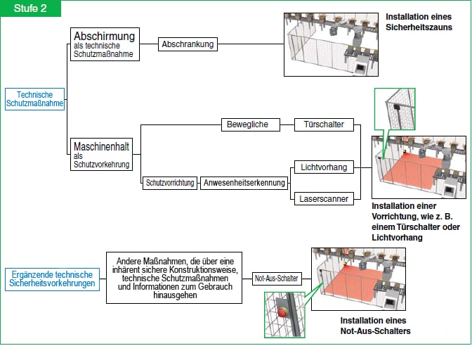 Stufe 2 aufgenommen. Ein Beispiel für eine ergänzende Schutzmaßnahme ist die Not-Aus-Schaltung.