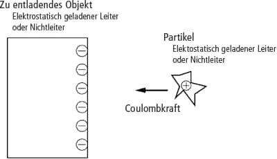 Wenn sich Partikel mit Luftströmen bewegen, die von Klimaanlagen oder ähnlichen Geräten verursacht werden, nehmen sie durch den Kontakt mit verschiedenen Gegenständen eine positive oder negative Ladung an. Positiv geladene Partikel werden von negativ geladenen Gegenständen angezogen und umgekehrt. Je mehr Partikel sich in der Luft befinden, um so mehr Partikel haften an den im Raum befindlichen Gegenständen an. Sind zudem die Partikelquellen (in der Regel Menschen und Kleidung) elektrisch aufgeladen, sind auch die von diesen Quellen ausgehenden Partikel elektrisch aufgeladen. Diese durch elektrostatische Aufladung erzeugte Anziehungskraft wird als Coulombkraft bezeichnet.