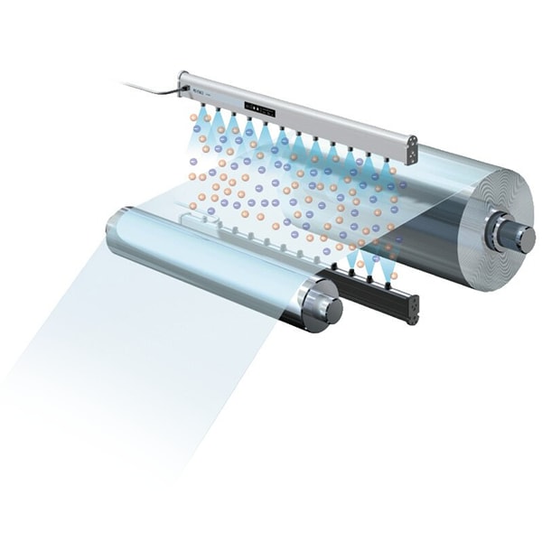 Bei der Beschickung von Rolle zu Rolle treten sehr starke elektrostatische Ladungen auf. Mögliche Probleme, dass sich die Wickelfolie nicht abziehen lässt, die Mitarbeiter Schmerzen haben, Funken beim Abwickeln entstehen oder das Festsetzen von Fremdkörpern beim Wickeln können durch statische Aufladung entstehen. Die neuesten Ionisatoren von KEYENCE können diese Probleme beseitigen.