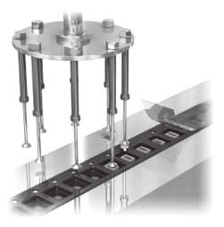 Während der Produktion von LED-Bändern wird das Kunststoffband während des Transports über Walzen elektrostatisch aufgeladen, während die LEDs im Teileförderer aufgeladen werden.