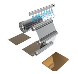 Wenn sich eine Folie, die beim Walzentransfer mit statischer Elektrizität aufgeladen wird, einem Edelstahlblech nähert, wird sie von der Coulomb-Kraft, die auf dem Blech wirkt, angezogen.