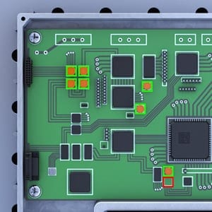 - Vision-Sensoren werden verwendet, um die Bestückung von 8 Halbleiterbauteilen auf einer Platine zu überprüfen.