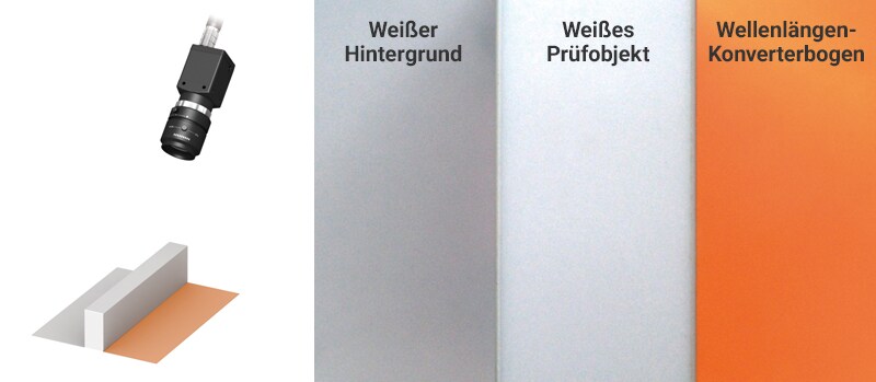 Beim Einbau von Leuchten in einen beweglichen Objekttisch gestaltet sich das Verlegen der Kabel oft als schwierig. Es gibt Situationen, bei denen der allein durch reflektiertes Licht erzeugte Kontrast nicht ausreicht. Mithilfe des Wellenlängen-Konverterbogens lassen sich auch ohne Verdrahtung Gegenlichtaufnahmen und damit stabile Erfassungen realisieren.