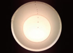 - Welches der beiden Bilder ist beim Erkennen von Fremdkörpern/Mängeln im Inneren eines Bechers besser geeignet, um über den gesamten Prüfbereich auch kleine Mängel erkennen zu können?