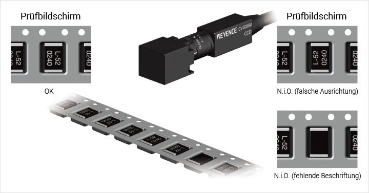 Prüfung der Ausrichtung und Korrektheit der Zeichen an Teilen in einem Prägeband