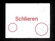 | Bilderstellungsmethode | Mittelung aller erfassten Bildern | Extraktion der Spiegelreflexionsbereiche des Streifenmusters | Extraktion von diffusen Reflexionen durch Vergleich von normalen und Spiegelreflexionsbildern | Extraktion von uneinheitlich glänzenden Flächen durch den Vergleich von spiegelnder und diffuser Reflexion | Extraktion von Formabweichungen durch deflektometrische Verfahren |