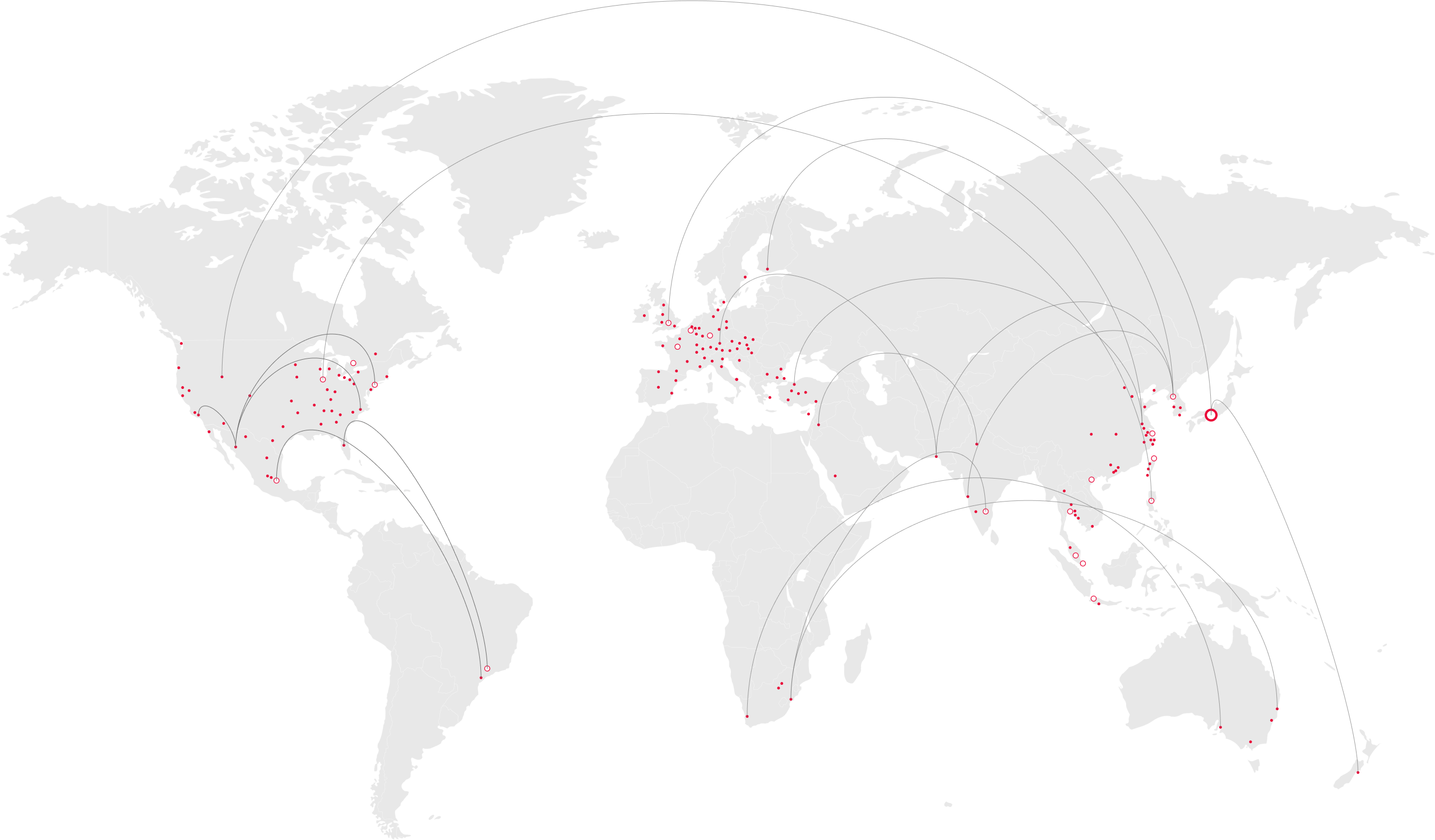 Angesichts der globalen Ausrichtung der Fertigungsprojekte unserer Kunden ist es für uns wichtig, grenzüberschreitende Dienstleistungen anzubieten. Zu diesem Zweck haben wir ein weltweites Netz an Niederlassungen aufgebaut, um überall auf der Welt hochwertigen Service und Support anbieten zu können.